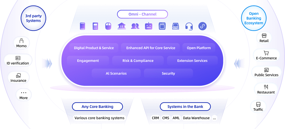 Some banks opt to completely rebuild their core banking systems, establishing new-generation technical frameworks and business systems that meet digital banking requirements to achieve comprehensive digital transformation. However, this approach entails substantial costs, long timelines and risks associated with system migration and data transfer.