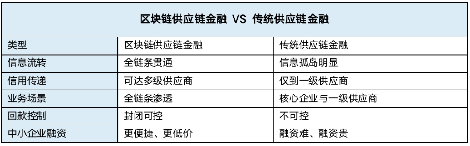 结合沐融科技多年技术实践,基于区块链的供应链金融平台是商业银行的最佳选择,相较传统供应链金融解决方案,基于区块链的供应链金融解决方案优势对比如下: