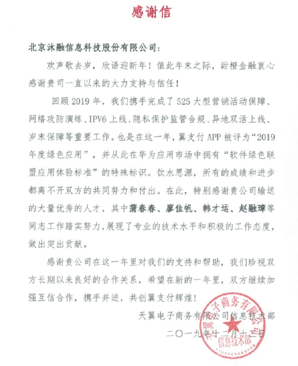 一封来自甜橙金融的感谢信