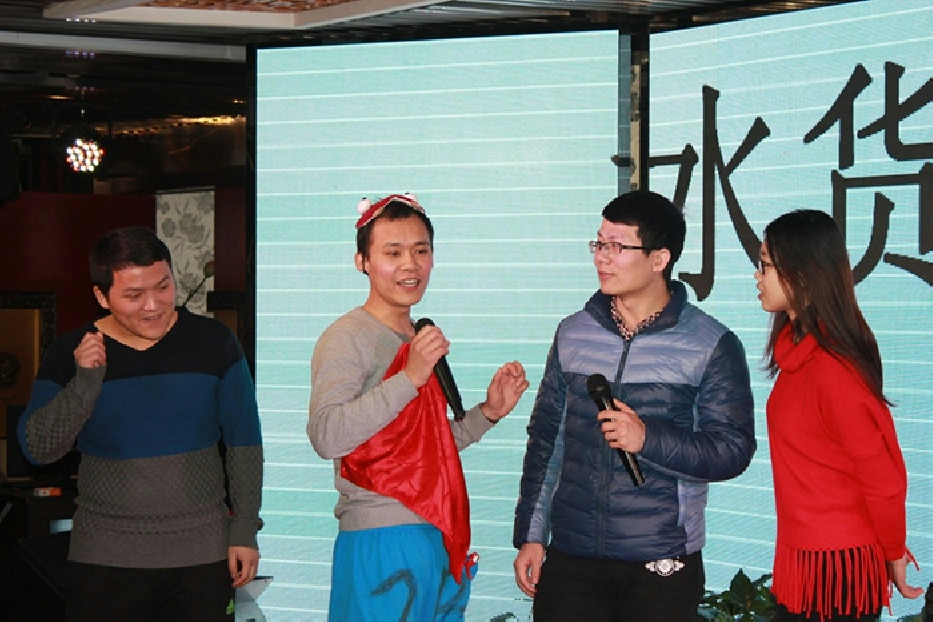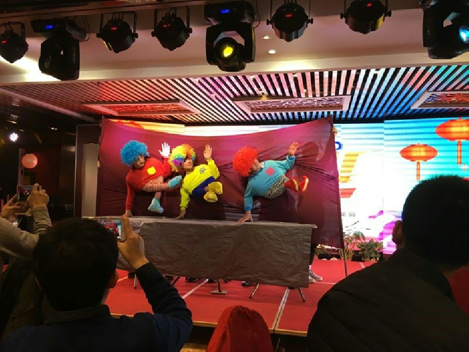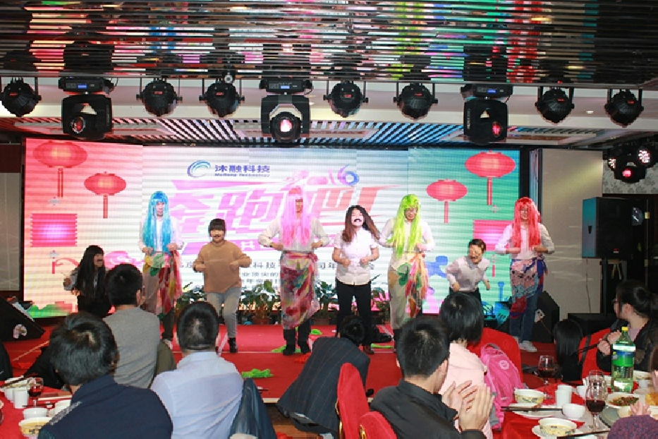 接下来年会进入了表演时间,宴会节目精彩纷呈,高潮迭起。《咱们屯里的人》表演一开场就博得头彩;舞蹈《小人舞》、《舞蹈串烧》将欢乐的气氛传达给了每一位员工;歌曲《自由》唱出了员工激情奔放的欢快心情;精心准备的小品《一粒高》、《傻子应聘》一经上台,就赢得了台下掌声阵阵;特别是压轴小品“《碰瓷》”,料点十足,演技超群,一气呵成,爆笑全场。
